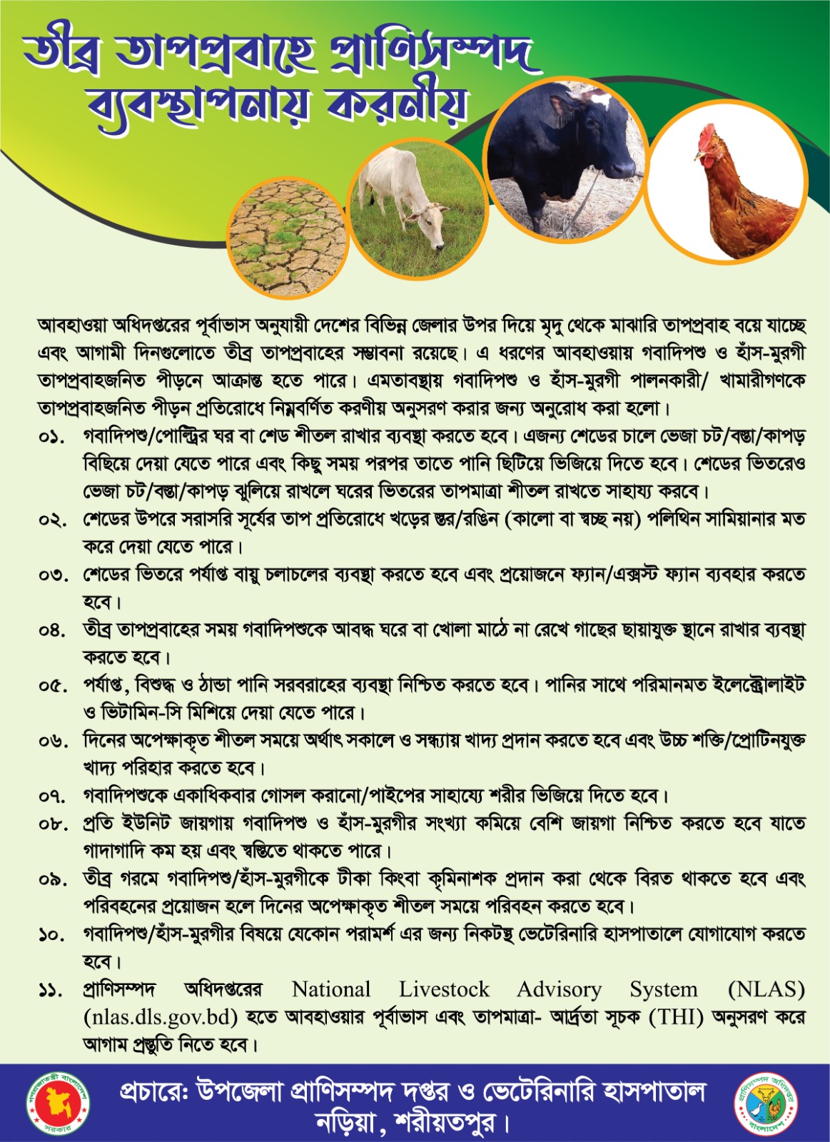 তীব্র তাপপ্রবাহে প্রাণিসম্পদ ব্যবস্থাপনায় করণীয়